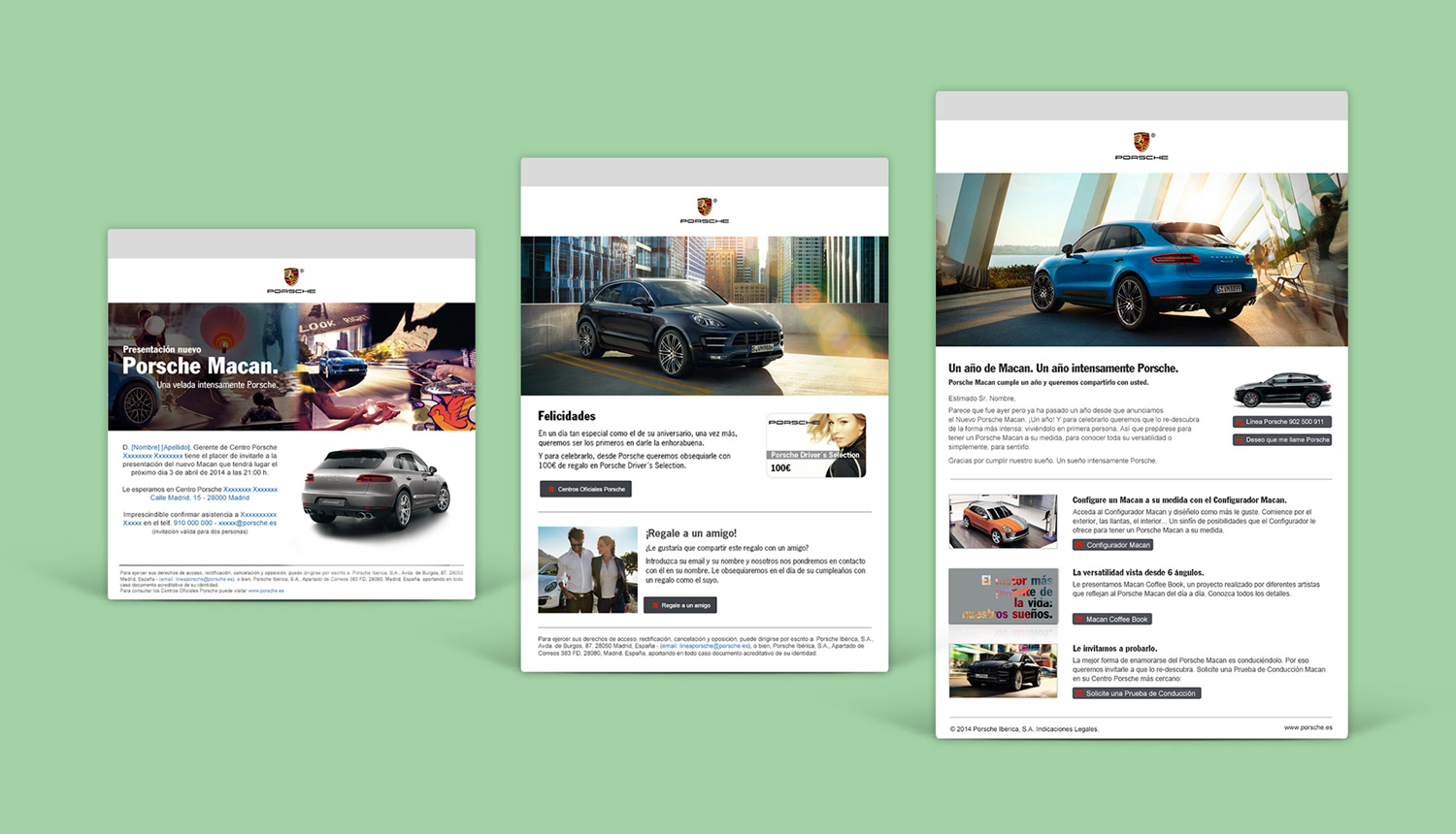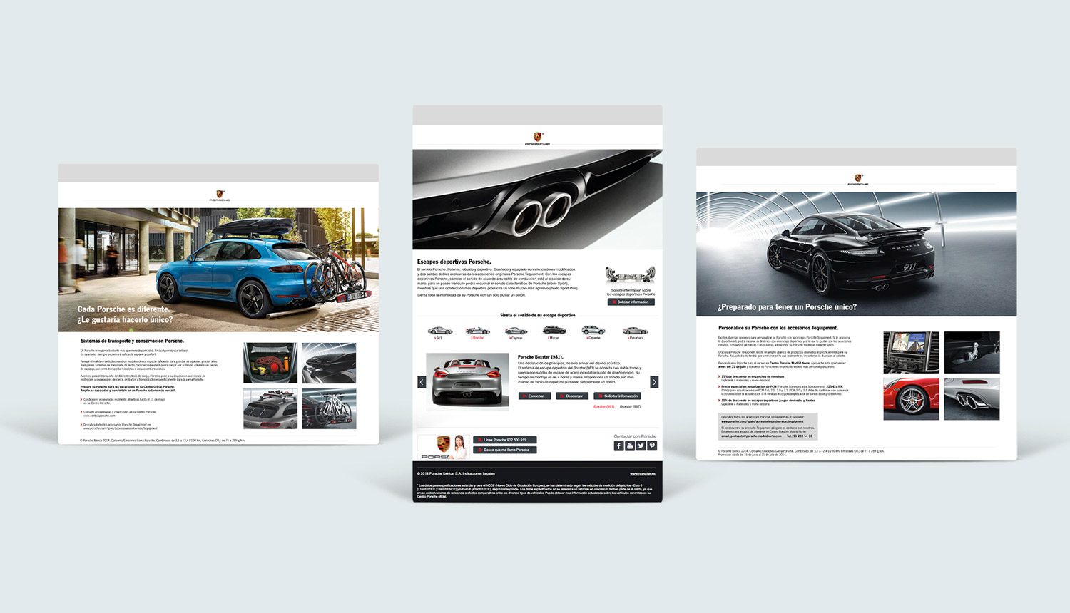 In my collaborations with Porsche across Spain and Portugal, I played a key role in a variety of impactful projects that showcased the brand’s innovation and elegance. This included packaging design for the Porsche Spyder launch, promotional efforts for the debut of the Porsche Macan, and tailored communications for the Porsche Sport Driving School. Other highlights included establishing lifestyle synergies, such as a collaboration between Porsche Life & Style and Carolina Herrera, alongside campaigns for the new Panamera and Cayenne launches. My work spanned from print materials (direct mail, press ads, brochures, and event decor) to digital assets, including invitations, videos, microsites, and bespoke event merchandising, all crafted to elevate Porsche’s sophisticated identity.